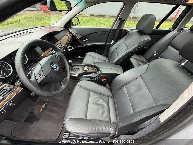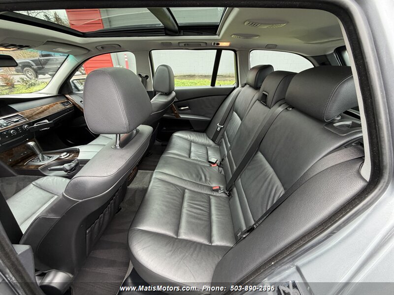 2007 BMW 530xi Wagon (AWD) — 3.0L I6, 255 hp / 220 lb-ft. Clean CARFAX, excellent overall condition, under 110,000 miles (averaging <6,000 miles/year). Fuel economy: 17 MPG city / 26 MPG highway. Factory equipment highlights: - xDrive all-wheel drive paired with the smooth 6-speed automatic transmission (Steptronic) for confident traction and responsive shifts. - 3.0L inline-6 engine delivering strong, linear power and refined freeway manners. - Safety systems: ABS, traction control and BMW Dynamic Stability Control plus full frontal and side airbag protection for front occupants and curtain airbags for added crash protection. - Comfort and convenience: dual-zone automatic climate control, power windows and door locks, remote keyless entry and cruise control for relaxed driving. - Seating and cargo: power-adjustable front seats with lumbar support, split-folding rear seats for flexible cargo/passenger layouts, generous wagon cargo area with a retractable cover and roof rails for extra carrying capacity. - Interior controls: multifunction steering wheel and a well-laid out center stack with AM/FM/CD audio and auxiliary input for media. - Exterior and ride: alloy wheels and a suspension tuned to balance comfort with BMW handling character. Friendly, well-maintained example with great mileage and a clean history — ready for many more miles of dependable driving. Feel free to call or text at 5038902896 also visit matismotors.com thank you.