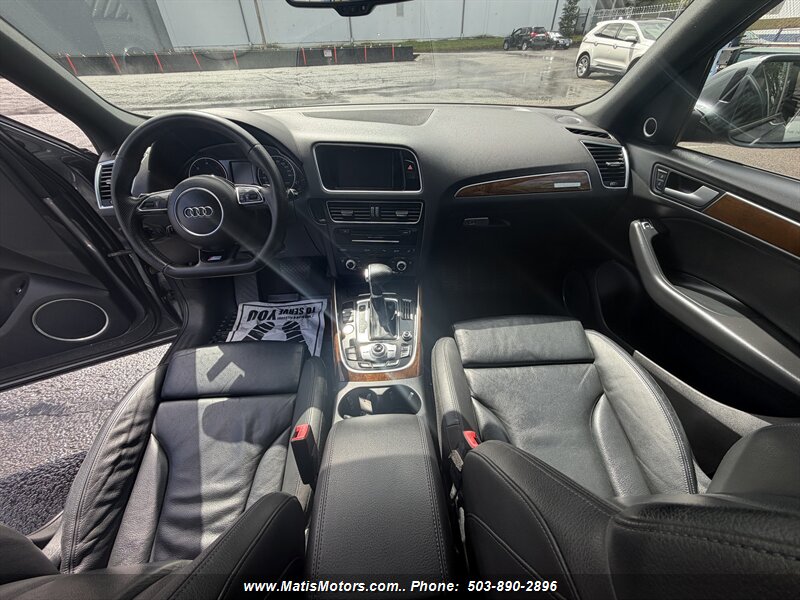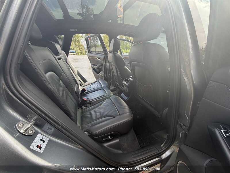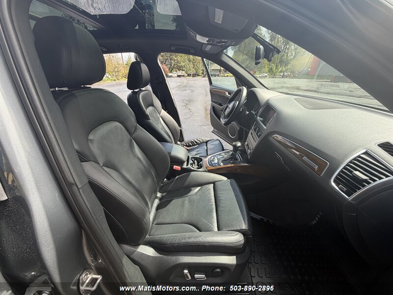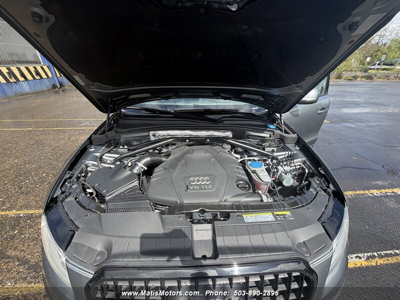 2015 Audi Q5 3.0 quattro TDI Premium Plus — powered by a 3.0L diesel turbo V6 with 240 hp and 428 lb-ft of torque — delivers strong low-end grunt with excellent fuel economy (24 MPG city / 31 MPG highway). This well-maintained example has under 95,000 miles (averaging less than 8,000 miles/year), is in excellent overall condition, and features a clean CARFAX. Factory Premium Plus equipment includes quattro all-wheel drive, leather seating surfaces with power-adjustable heated front seats, dual-zone automatic climate control, panoramic power sunroof, power liftgate, Audi MMI infotainment with Bluetooth and USB connectivity, Xenon headlights with LED daytime running lights, alloy wheels, split-folding rear seats and a full suite of safety systems (ABS, stability and traction control, multiple airbags, plus parking assistance features). call or text anytime to schedule a test drive at 5038902896 also visit matismotors.com thank you.
