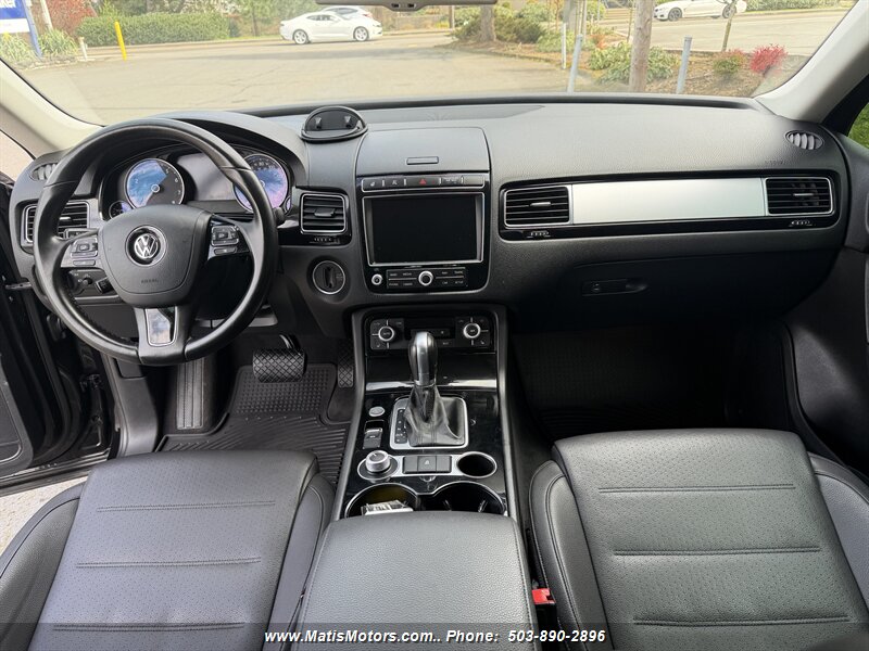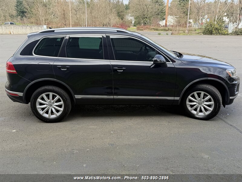 2016 Volkswagen Touareg VR6 Sport AWD in excellent overall condition with a clean CARFAX. Powered by a 3.6L VR6 producing 280 hp and 266 ft-lbs of torque, paired to an 8-speed automatic and full-time 4MOTION AWD — EPA rated 17 MPG city / 23 MPG highway. Factory equipment includes sport-tuned suspension, alloy wheels, Bi-Xenon headlights with LED daytime running lights, leather seating surfaces with heated front seats, power-adjustable driver (with memory), dual-zone automatic climate control, touchscreen infotainment with Bluetooth and steering-wheel controls, premium audio, rearview camera with parking sensors, keyless entry and push-button start, roof rails and power liftgate. Friendly, well-maintained and ready to drive. Pls call or text at 5038902896 also visit matismotors.com for free carfax.