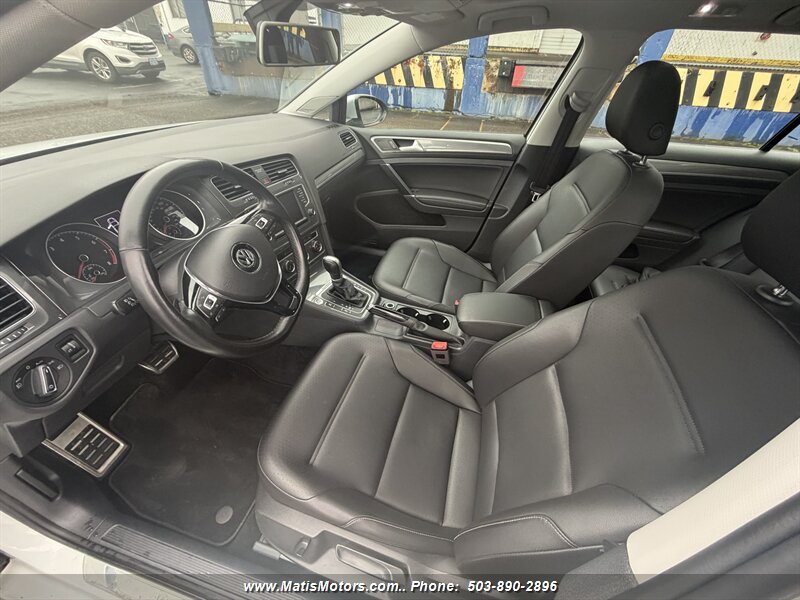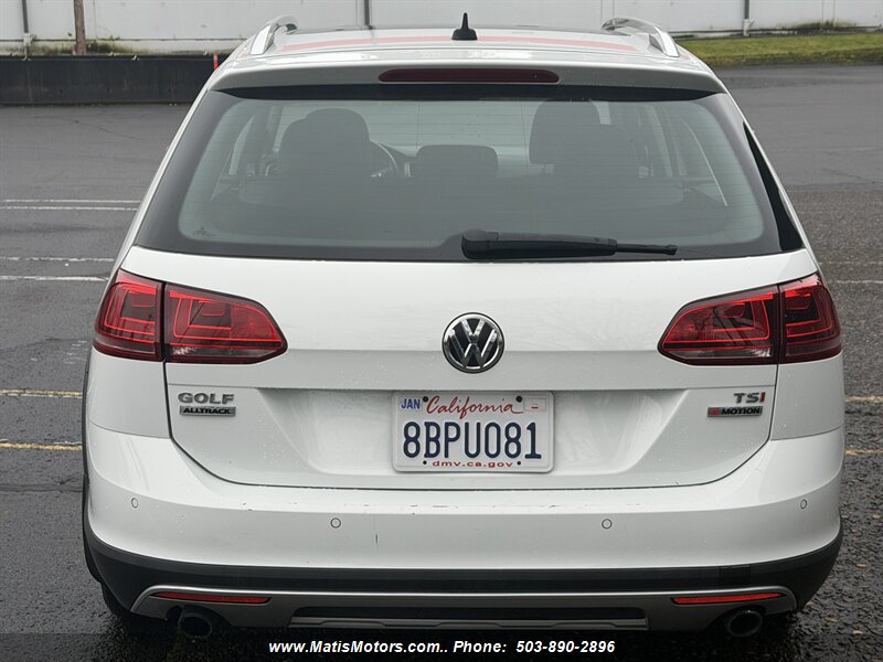 2017 Volkswagen Golf Alltrack TSI SE 4MOTION — powered by a 1.8L turbocharged I4 (170 hp, 199 lb-ft) with 4MOTION all-wheel drive and a smooth automatic transmission. Clean CARFAX, excellent overall condition, under 93,000 miles (averaging <10,000 miles/year) and rated 22 MPG city / 30 MPG highway. Factory equipment includes raised Alltrack suspension with protective body cladding and roof rails, alloy wheels, fog lamps and daytime running lights; comfortable heated front seats with durable leatherette, power driver adjustments and split-folding rear seats for flexible cargo; dual-zone automatic climate control; touchscreen infotainment with Bluetooth, USB/Aux inputs and steering-wheel audio controls; plus a full safety suite — ABS, traction and stability control, multiple airbags, rearview camera and tire pressure monitoring. Friendly, capable and ready for adventure. Feel free to call or text to schedule a test drive at 5038902896 also visit matismotors.com thank you.